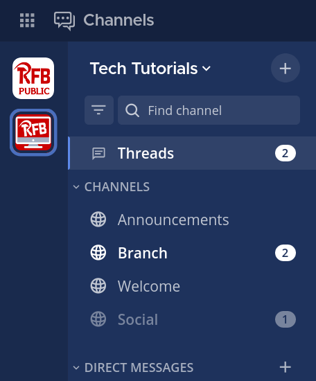 When a new applicant is added to the server they have access to their Branch's Team and the RFB Public team.